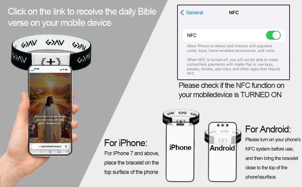 Our wearable Bible bracelet designed for Christians seeking daily spiritual guidance, combines the timeless beauty of a bracelet with the power of technology. With its NFC feature, this religious accessory allows you to conveniently access Bible verses wherever you go.